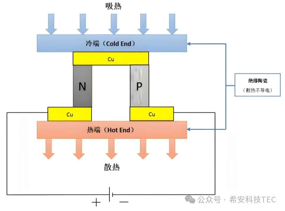 A: Nuair a théann an sruth trí chiorcad comhdhéanta de dhá sheoltóir nó leathsheoltóirí éagsúla, beidh ionsú nó scaoileadh teasa ag pointe teagmhála an dá ábhar mar gheall ar threoracha éagsúla an tsrutha. Is próiseas é seo maidir le comhshó leictritheirmeach agus próiseas droim ar ais ar éifeacht Seebeck.